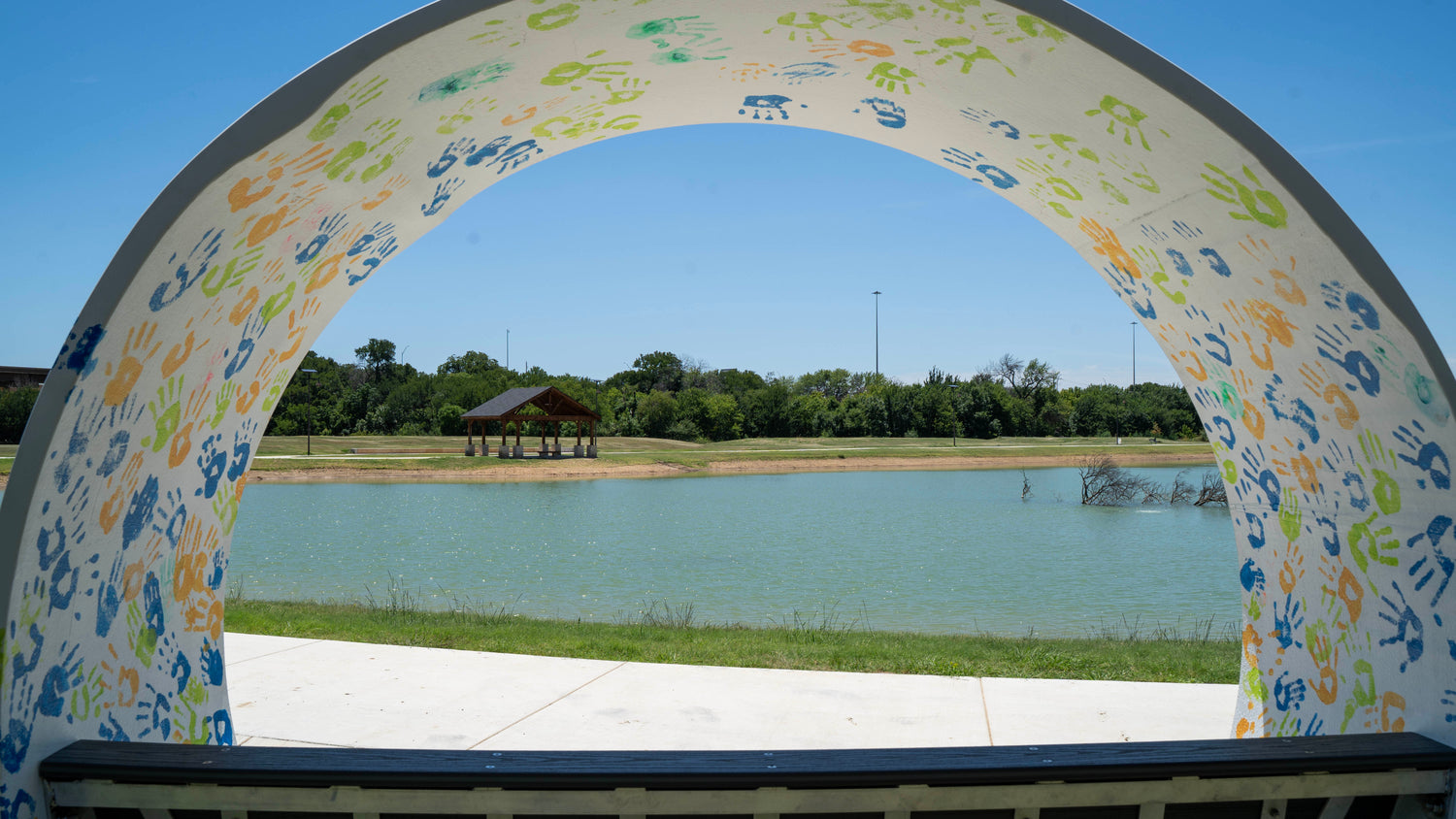 To celebrate the opening of a North Park in Haltom City, TX the community left their mark—literally. During the ribbon-cutting event, citizens dipped their hands in paint, creating vibrant handprints on this bench. This collaborative artwork symbolizes unity, pride, and the shared spirit of a growing community, ensuring everyone’s touch becomes part of the city’s lasting legacy.