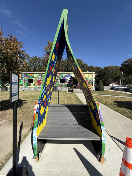 Painted by local artist Brooklyn Lamb, this vibrant piece bursts with bold, blooming native wildflowers, a joyful tribute to Michigan’s natural beauty and community spirit.