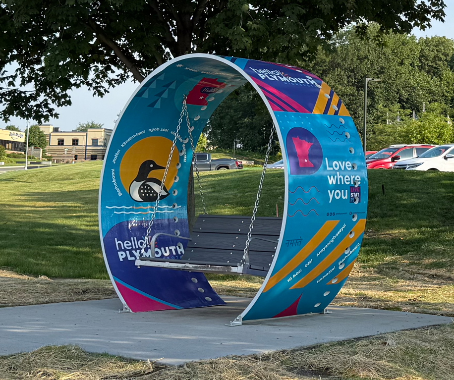 Bright and welcoming, this vinyl installation celebrates Plymouth’s new “Hello Plymouth” branding with color, connection, and community spirit. The design blends bold typography with imagery inspired by local lakes, parks, and landmarks. Vivid hues and dynamic shapes evoke motion and optimism, inviting residents and visitors to experience Plymouth’s friendly, forward-looking identity. With its polished finish and modern composition, the piece transforms everyday space into a cheerful visual greeting — a vibrant reflection of the “Hello Plymouth” spirit.