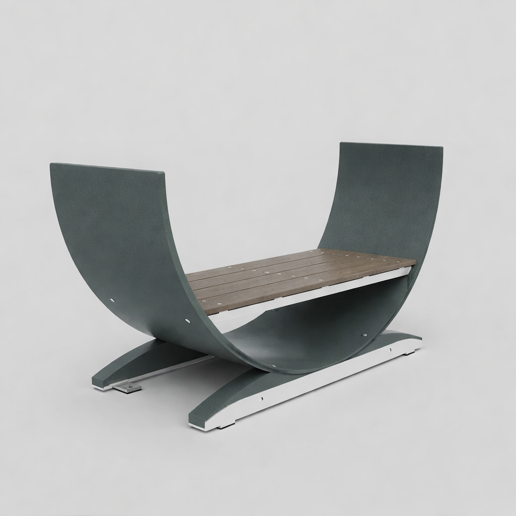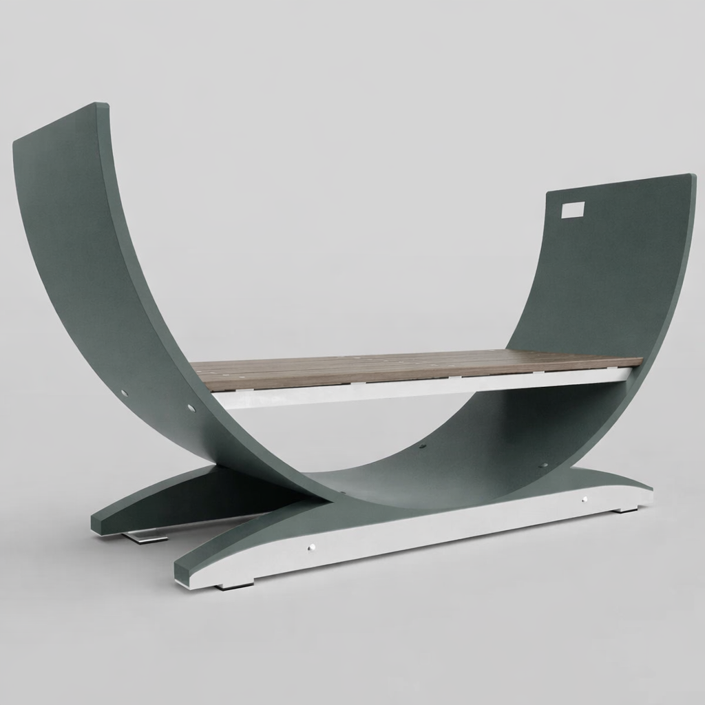 The Big Bend is outdoor seating with a twist – literally. Its curved, backless design lets people sit from any side, making it perfect for gathering spaces. Comfortable, durable, and effortlessly cool, it fits right in at parks, campuses, or anywhere people need a place to relax.