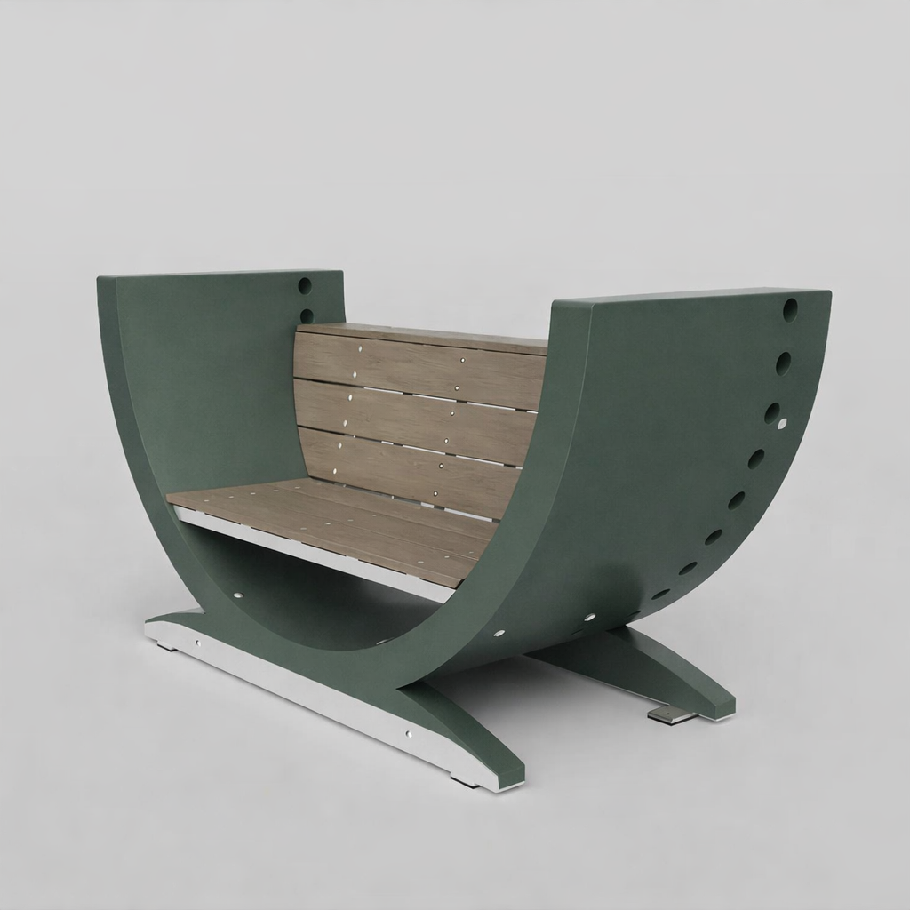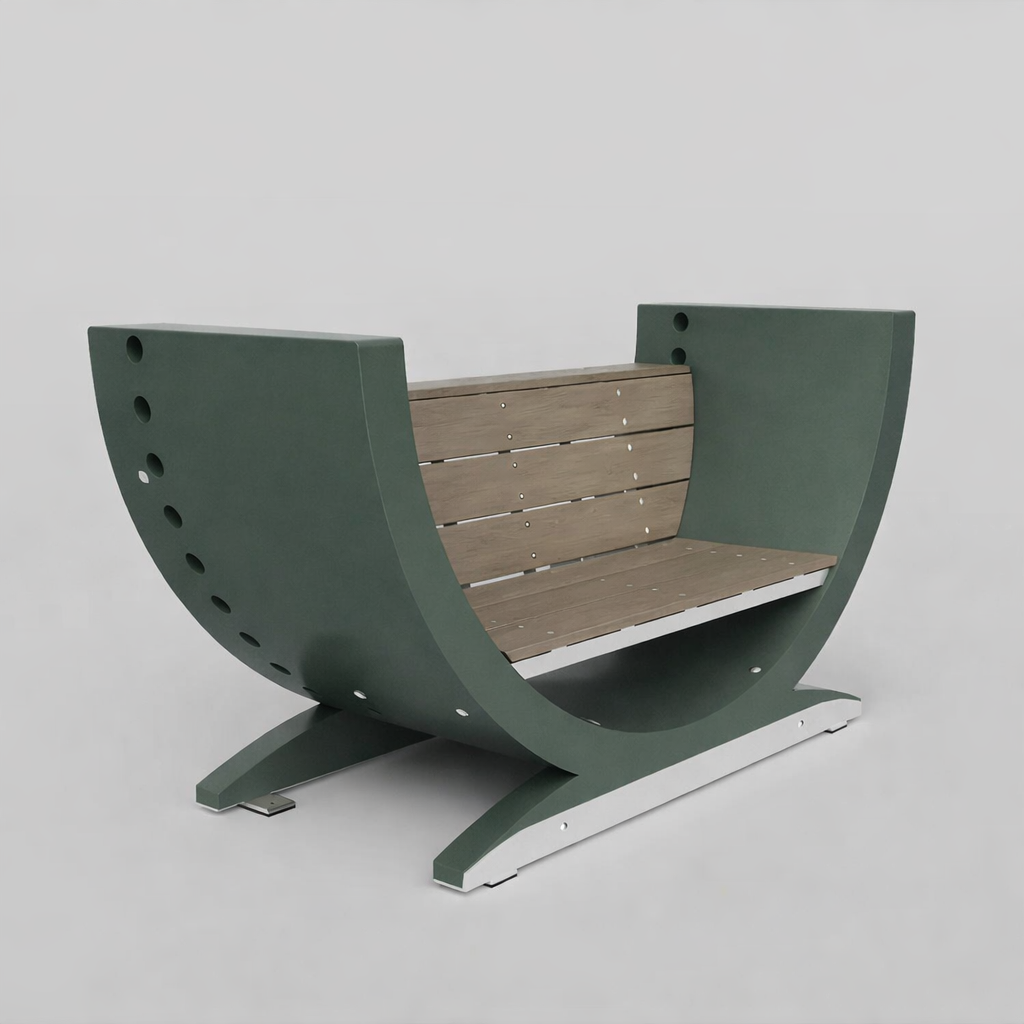 The Sequoia bench delivers bold design with unmatched comfort. Its curved frame and high-backed seat create a natural, supportive place to sit and relax. Perfect for parks, campuses, and public spaces, the Sequoia’s solid, durable form makes it a standout piece while providing a cozy spot to unwind. Subtle details, like the exposed bolt holes, add character and a sense of craftsmanship that’s hard to miss.